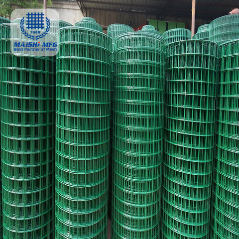 รั้วลวดเชื่อมเหล็กเคลือบพีวีซีสีเขียวขนาด 50 ฟุต พร้อมตาข่าย